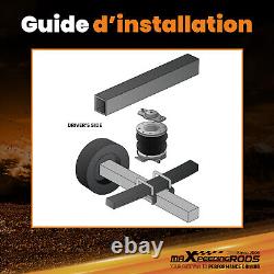 MaXpeedingrods kit de suspension pneumatique. Installation pratique et processus de fabrication. Facile à installer, système sans perçage, prend généralement 1 à 2 heures. L'installation par un professionnel est recommandée. Support galvanisé pour usage intensif, avec caoutchouc naturel et acier à haute résistance, offrant une capacité de charge élevée de 8800 livres et une longue durée de vie.